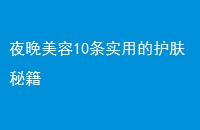 夜晚美容10条实用的护肤秘籍,如果你担心每天敷面膜会导致过度保养,那么可以在洁面后用保湿美容液将纸面膜浸透,敷在面部。10分钟后面膜中的水分会被肌肤吸干,接着再喷一层化妆水,5分钟后揭下,肌肤就能变得水润柔嫩,而且即使每天做也不必担心皮肤负担过重。如果连纸面